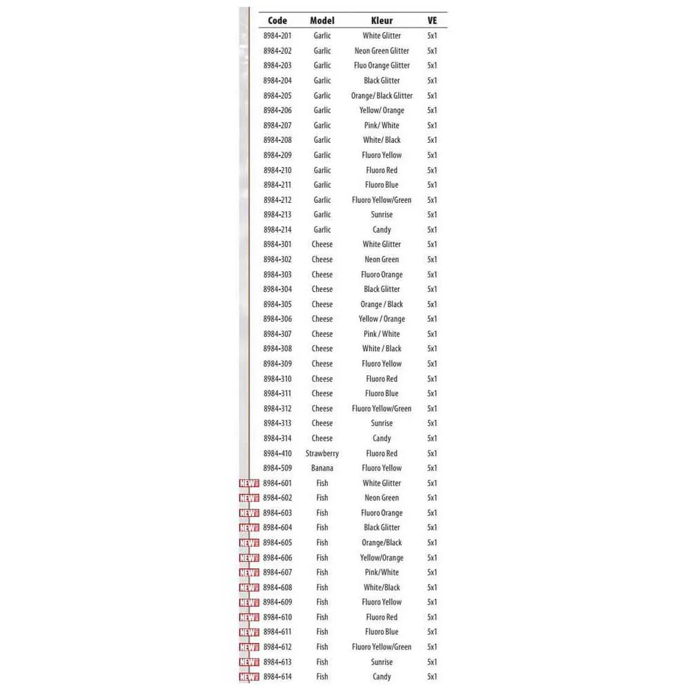The full Pro Paste colour range is available with a very strong garlic scent or a cheese scent.