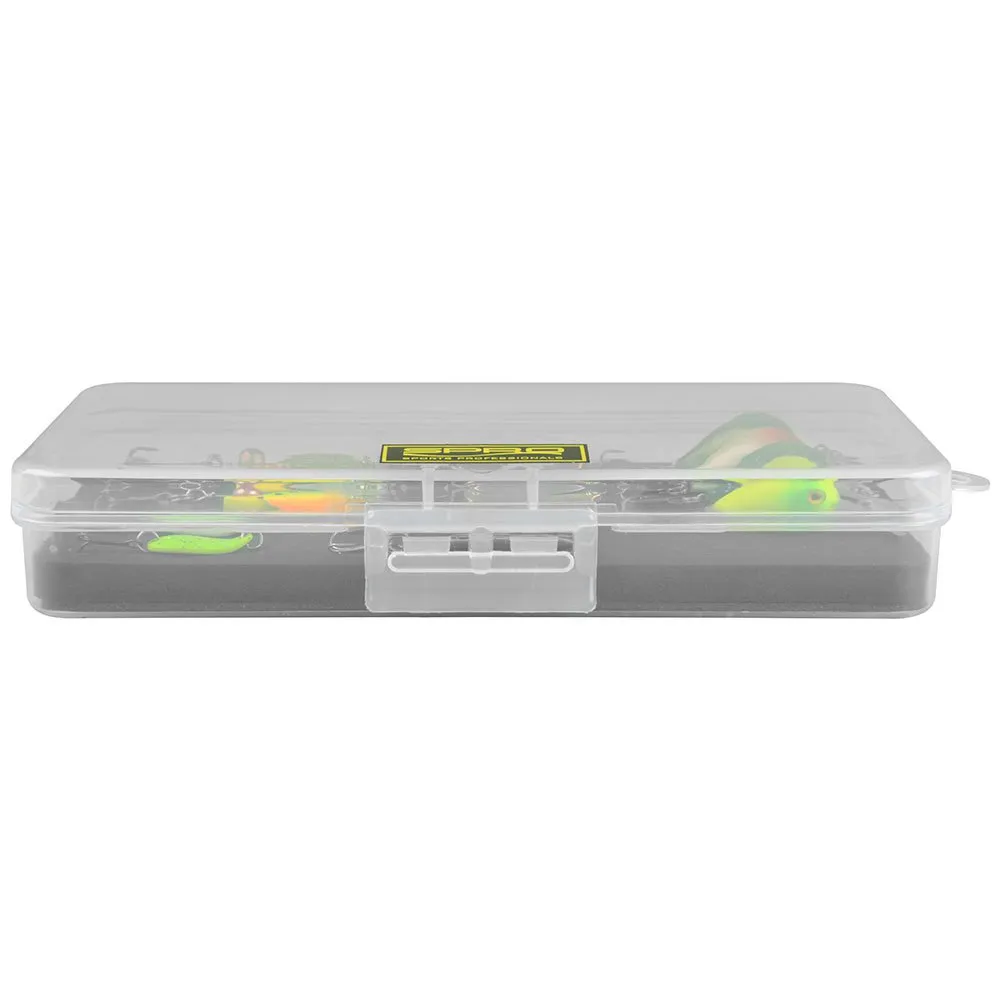 Compact, transparent tackle box with EVA including 10 slots for safe and easy storage of stingers, jigs and all kinds of small lures.