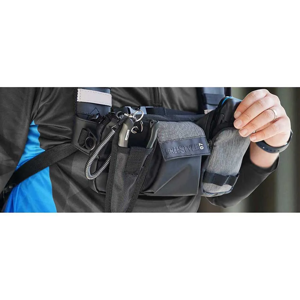 The Side Pouch 12 is a compact bag built around one Freestyle tackle box. The front can be completely opened to reveal a large and removable rigged lure board for storing rigged lures and hooks. There is also space for 6 Reload Terminal boxes so you can store your snaps, lure loops and swivels etc in an organised manner. In the front pocket is a water resistant document pocket. The front of the bag has straps to connect your Plier 18´s and a D-ring to secure the plier carabiner. Including one FS Tackle Box.