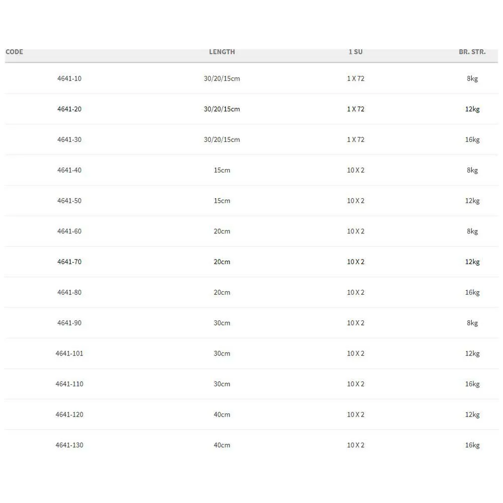 Packs of 72 predator traces in mixed lengths.
