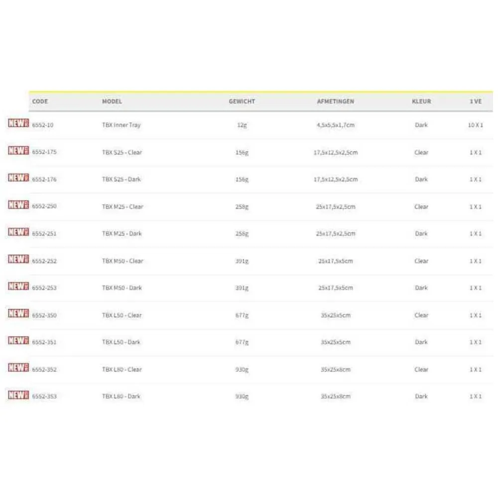– Seperate TBX shelf for small parts available.