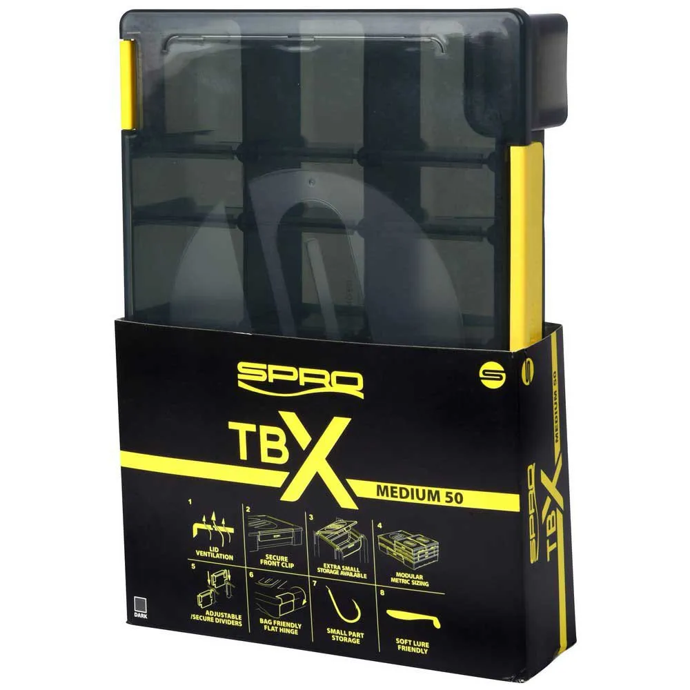 TBX boxes are completely designed by SPRO specifically for lure fishing. The boxes are all made with metric outer dimensions in a modular sizing pattern, meaning they can be stacked and placed in a bag in a uniform way. TBX boxes are designed with a completely unique flat hinge system, meaning every side of the box is flat. This is a great feature as it makes putting the boxes in tackle bags much easier. Each box has a single wide hindge which can be used with one hand. Another unique aspect to TBX boxes are the small parts sections. Where on normal tackle boxes the edges are wasted space, our designers have taken the opportunity to make use of the space by adding shallow compartments for terminal tackle and other small parts. There is even a TBX tray available which is compatible with most boxes.