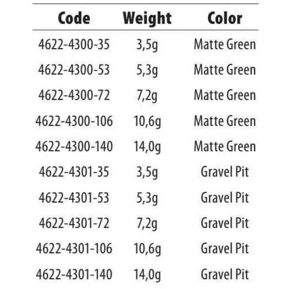 The extra hard Tungsten material gives you great feeling and ´´feedback´´ from what is happening on the water bed.