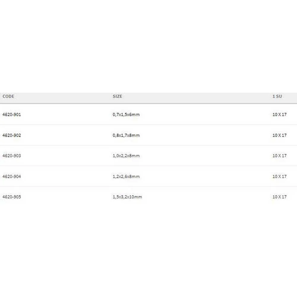 | Size | 0.7 x 1.5 x 6 mm Matte Black, 0.8 x 1.7 x 8 mm Matte Black, 1.0 x 2.2 x 8 mm Matte Black, 1.2 x 2.6 x 8 mm Matte Black, 1.5 x 3.2 x 10 mm Matte Black |
